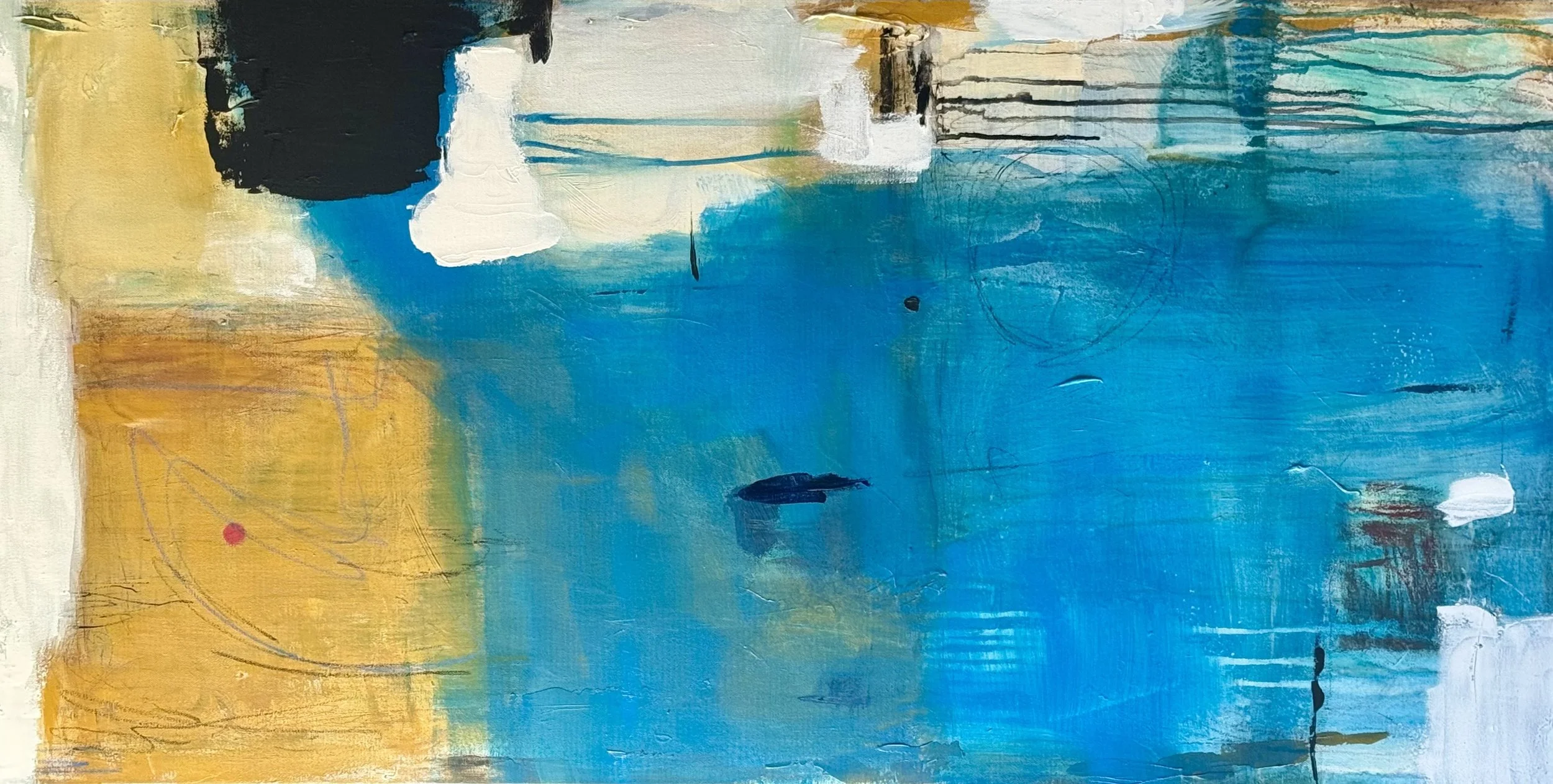 When I paint, I'm transported to a realm of zero thinking. I'm fully immersed in the present, in the here and now. As I finish a piece of art, I find myself wondering how and when I made those marks, those splashes of paint, those subtle additions here and there. The process is like a meditation, where time ceases to matter.